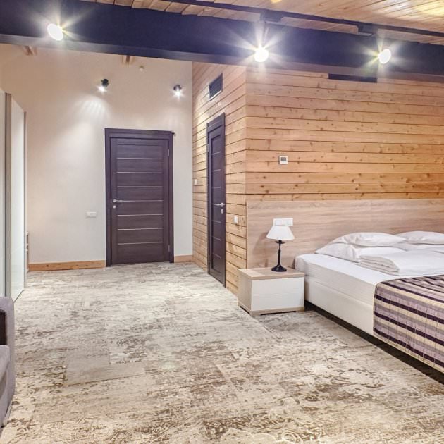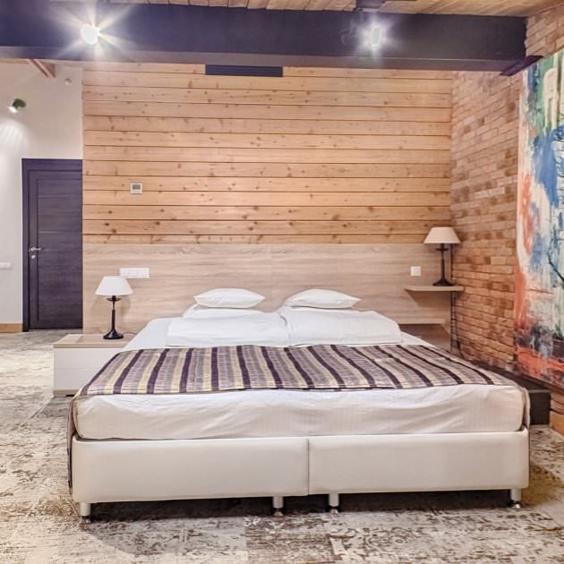 Просторные 2х местные номера категории «Студия 6 этаж» в современном стиле «Лофт» с одной двуспальной кроватью или двумя односпальными кроватями.